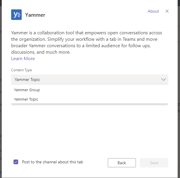 Now you get the integrated Yammer page inside of the tab in Teams! It looks sleek and works great to read and post messages directly from the tab!