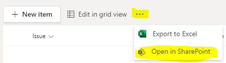 If you are using lists from within Microsoft Teams, go to the list in which you want to create a rule and click the (…) and select “Open in SharePoint”