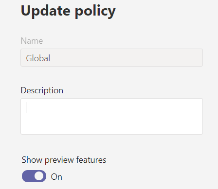In the Teams admin center you can find the “Update policies” tab. Here you can use the default “Global” policy or create and assign other policies, in order to enable/disable the Public Preview channel feature for Microsoft Teams clients.