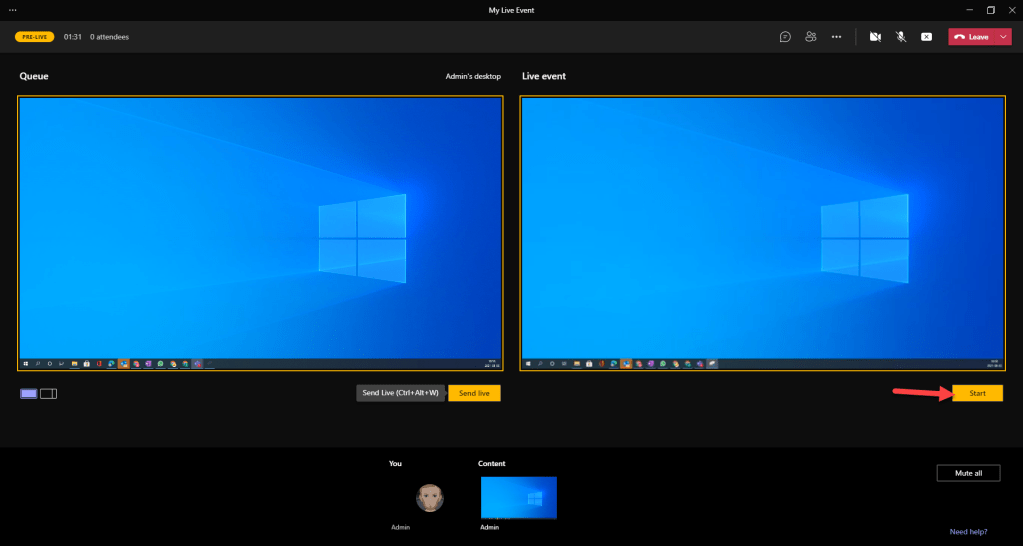 Also, the experience as an attendee is somewhat budgy. I had to reload the link for the Live Event a few times in order to view the restarted stream. It didn’t start automatically for me.