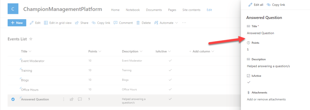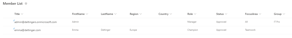 Admins, adoption responsibles or Champion program managers can also use the SharePoint lists to gain information about members and champion activites /events. Since SharePoint lists are very easy to work with, customizations are done quickly. Also, if you integrate Lists with the Power Platform tools, you can add automations and vizualisations based on list actions and list data.
