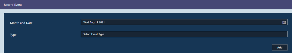 Select a date and a type of activity/event. There are a few pre-populated values.