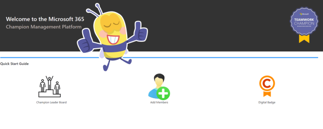 Recently Microsoft released a toolkit called Champions Management Platform (CMP). It’s a solution that is leveraging the SharePoint framework and can be installed as an app in Microsoft Teams. From here you can manage your champions, inspire them to do their role even better by utilizing gamification, as well as a place to find champions within certain topics or geographical areas in your organization.